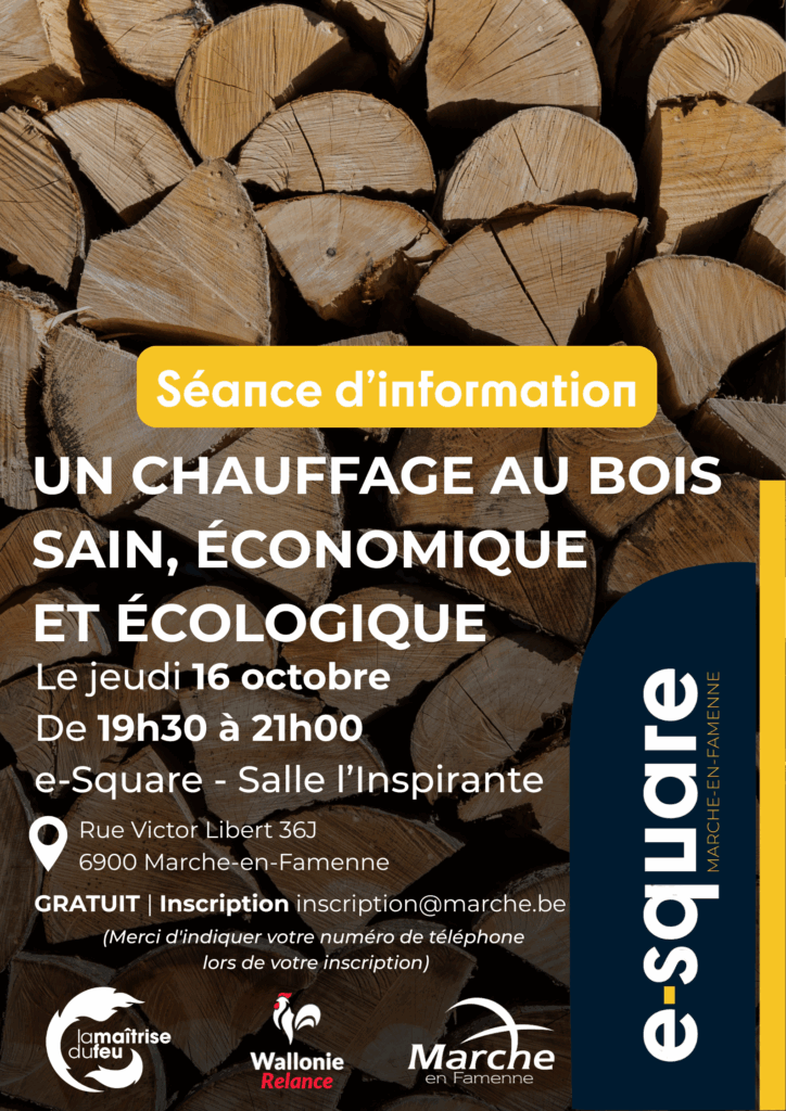 En partenariat avec la campagne de sensibilisation La Maîtrise du Feu, la Ville de Marche-en-Famenne vous invite à une séance d’information pour découvrir les bons réflexes d’un chauffage au bois bûche performant et durable